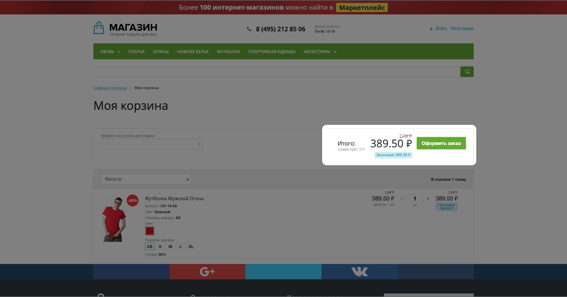 • Ввести код подтверждения и нажать на кнопку “Ввести код”. После списания бонусов итоговая сумма к оплате изменится.